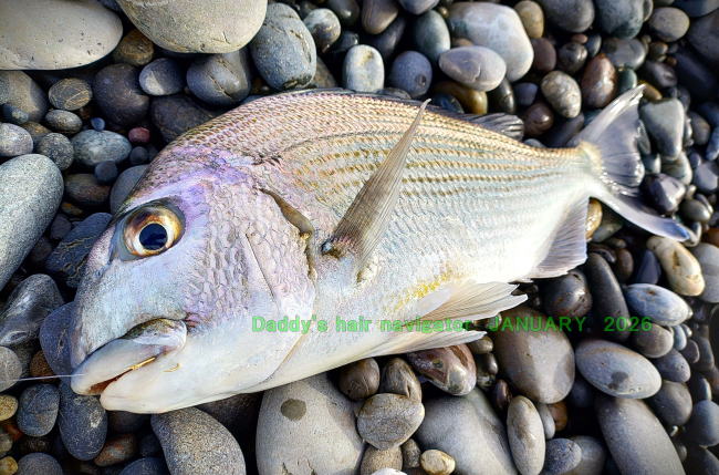 辛抱強く待ってから来た魚はやはり格別だ。消し込んだ浮きの主は美味といわれる43cmの平鯛(ヘダイ)だった。